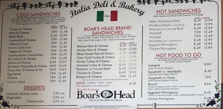 Italia Deli & Bakery Menu (Update 2025)